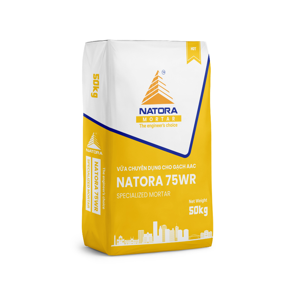 Vữa xây tô NATORA 75WR là sản phẩm vữa khô trộn sẵn chuyên dụng cho gạch AAC, đạt mác 75, được thiết kế thi công lớp mỏng với độ bám dính cao và khả năng giữ nước tốt. Sản phẩm giúp giảm nứt, hạn chế mất nước nhanh khi thi công trên gạch nhẹ, đảm bảo liên kết chắc chắn và nâng cao độ bền cho công trình.